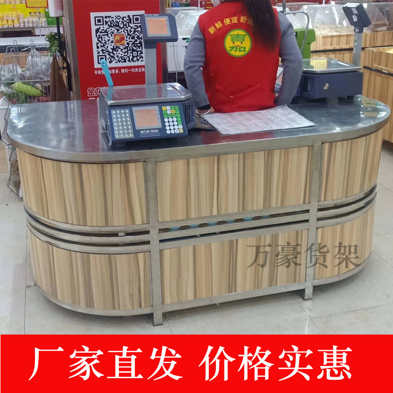 Supermarket shelves raw fresh supermarket to call table, silver table wooden prose weighing table bag columns to call the table