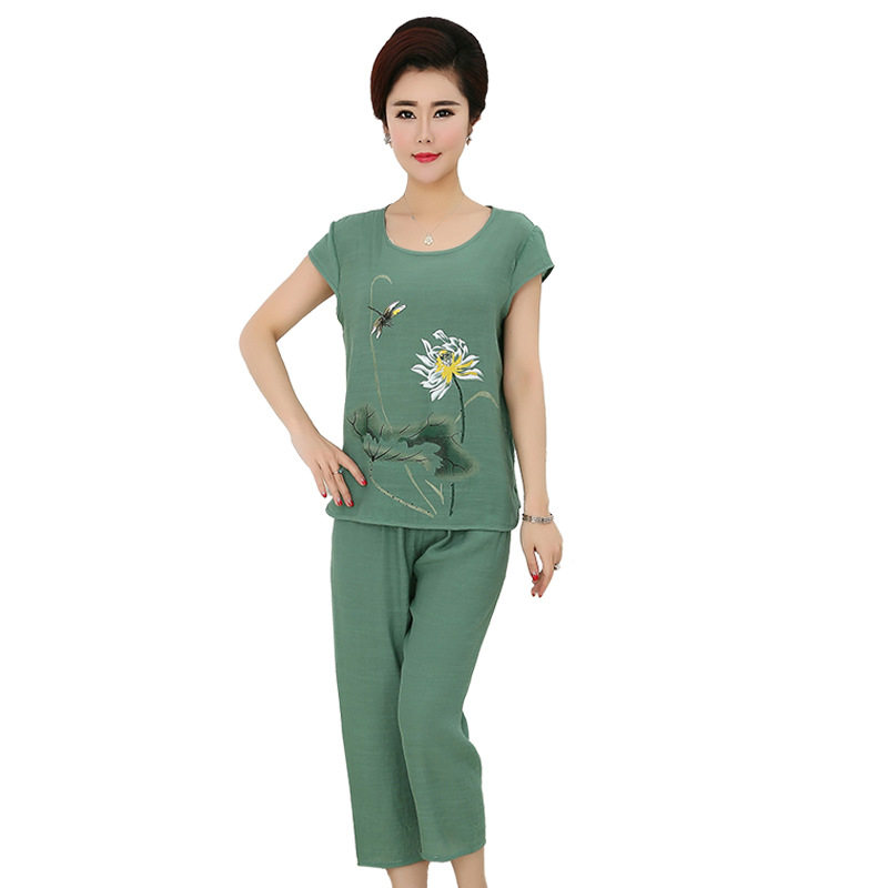 Middle-aged and elderly mother pajamas women middle-aged cotton silk short-sleeved home clothes rayon two-piece suit summer thin section large size