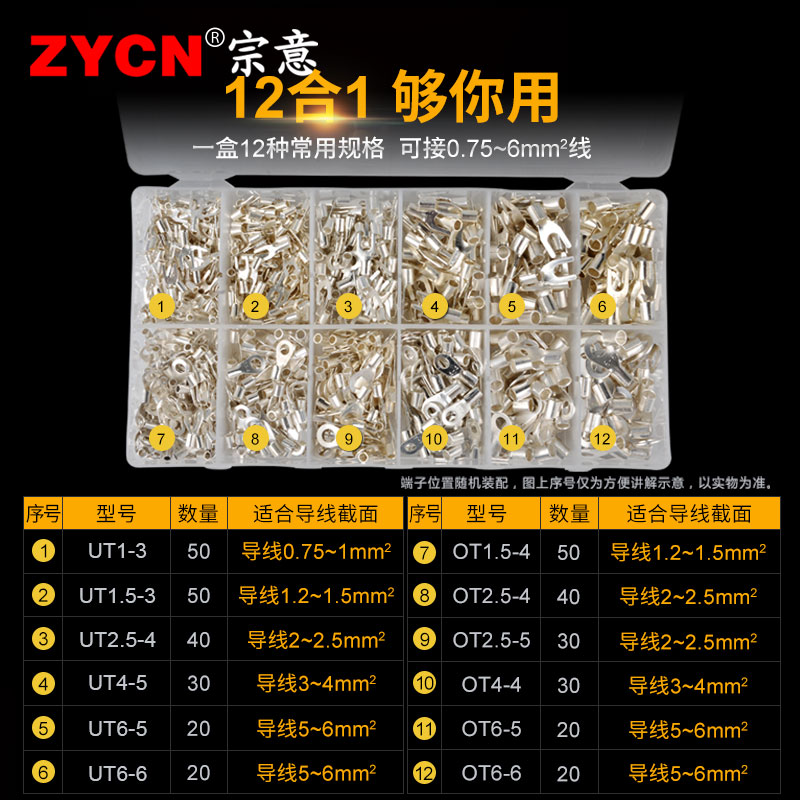 UT fork-naked terminal OT round naked terminal copper wiring terminal u type o type cold press line nose 12 fit 1 boxed