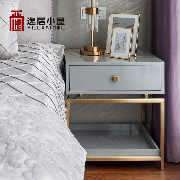 Postmodern light luxury fabric double bed small apartment whole house custom furniture 1 8m high back master bedroom soft leather bed