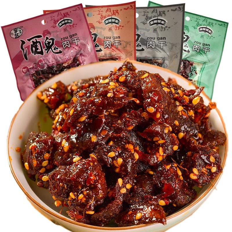 Sichuan specialty Xiangyi Spicy drunkard dried meat 50g*10 packs pork and beef jerky preserved meat cooked spicy strips snacks snacks