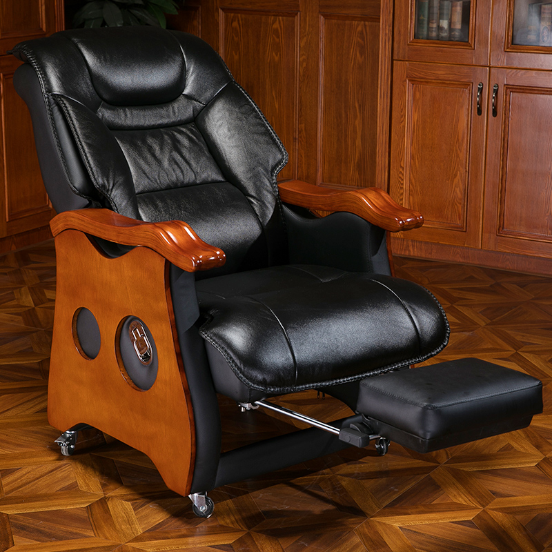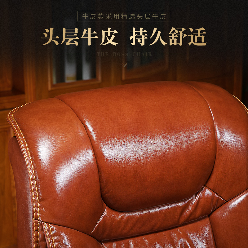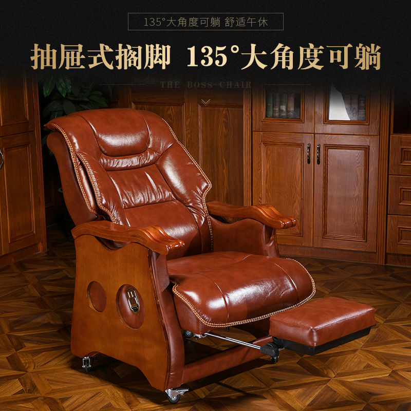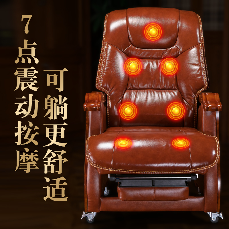 Li Fulong Leather Boss Chair Home Business Cowhide Executive Chair Reclining Massage Solid Wood President Desk Chair