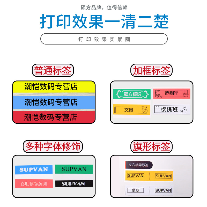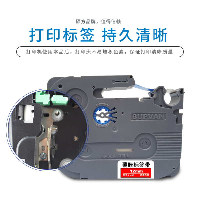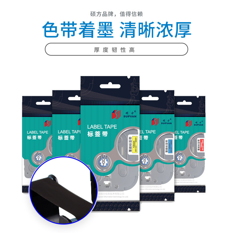 Supvan Shuofang label machine ribbon 12mm 9mm 6mm white bottom black letter LP5125 label machine self-adhesive ribbon coated label paper Shuofang cable flag type label ribbon strong sticky