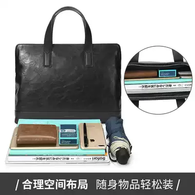 Scarecrow briefcase men's business computer bag file bag large capacity casual simple leather bag handbag