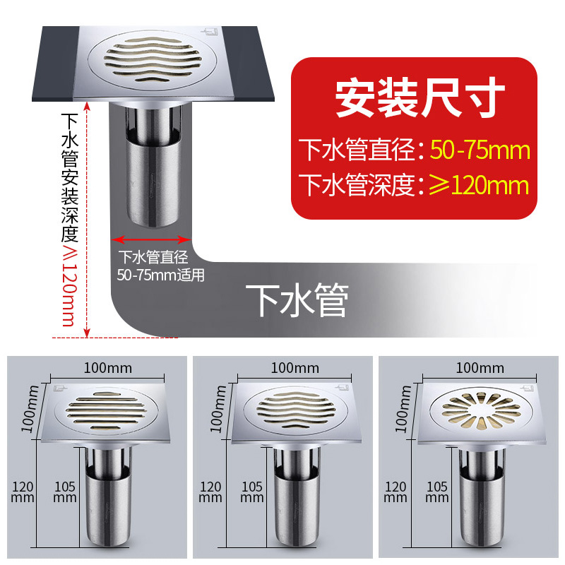 Deep water seal Kitchen and bathroom floor drain Deep water seal Washing machine floor drain Deep water seal Shower area floor drain (Package 1) 1 wash 1 kitchen and bathroom (Package 2)1 shower 1 kitchen and bathroom (Package 3)2 kitchen and bathroom floor drain