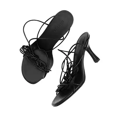 ALEXSARA round head slender simple strappy sandals 2021 Spring/Summer New comfortable heel minimalist heels