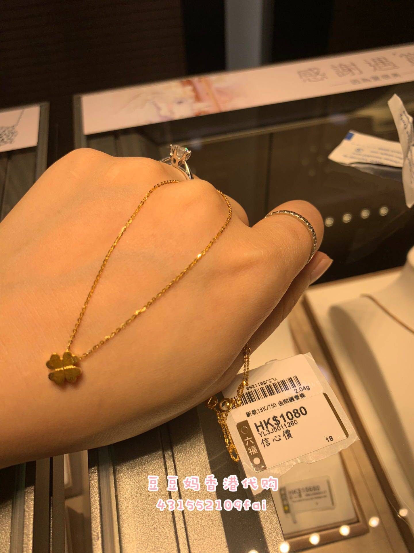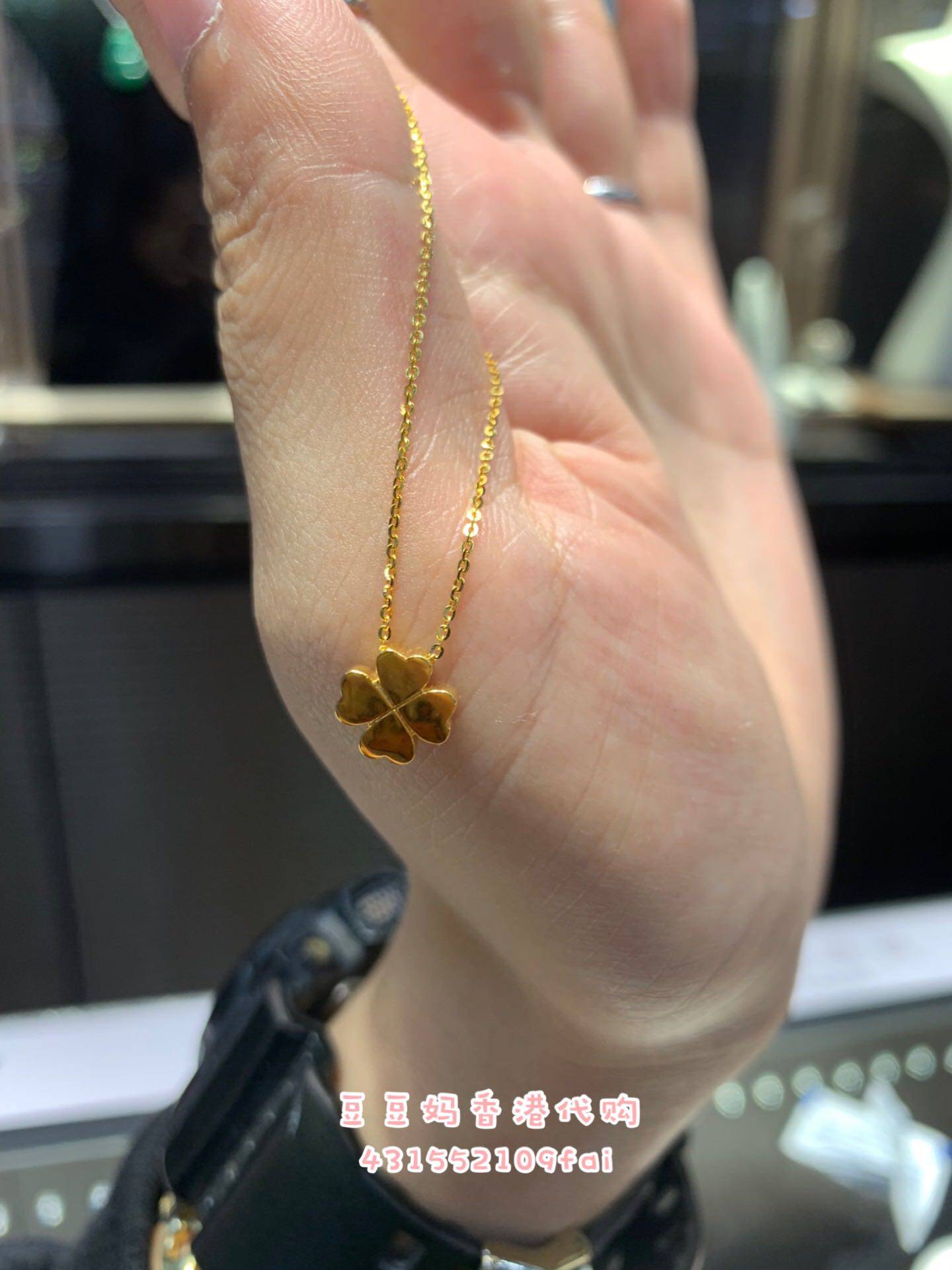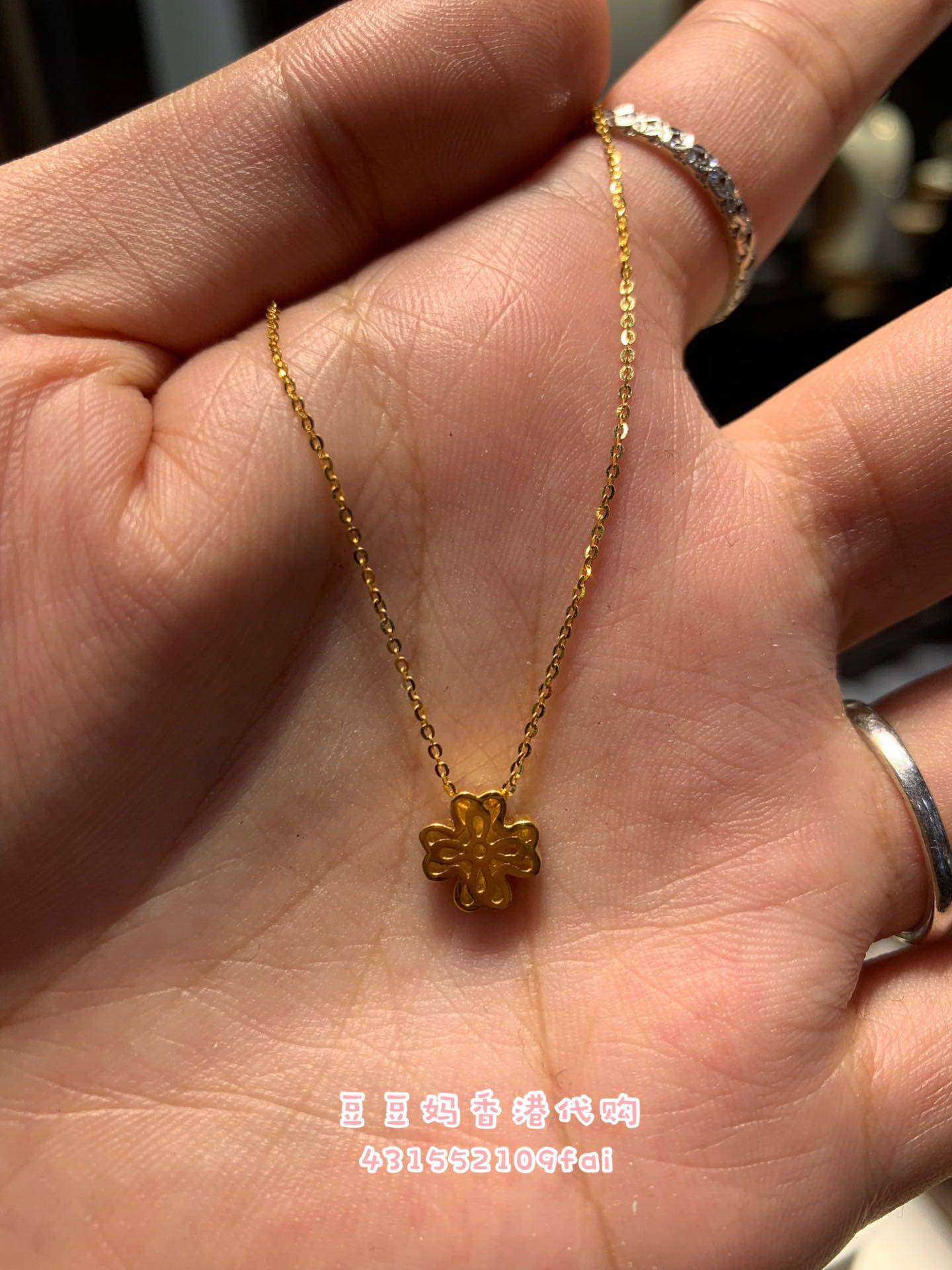 Dou Ma Hong Kong Luk Fook Jewelry 18K 750 Rose Gold Four Leaf Clover Chain Necklace Simple Lucky Net Red