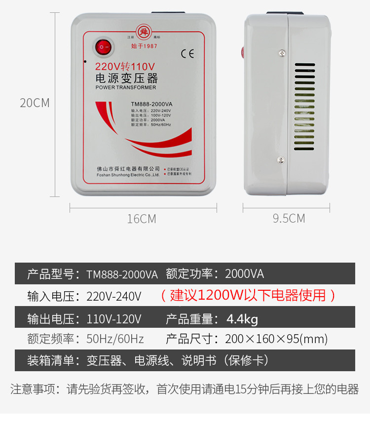 Shunhong 2000W transformer 220v to 110v 110v to 220v Japan American rice cooker voltage converter