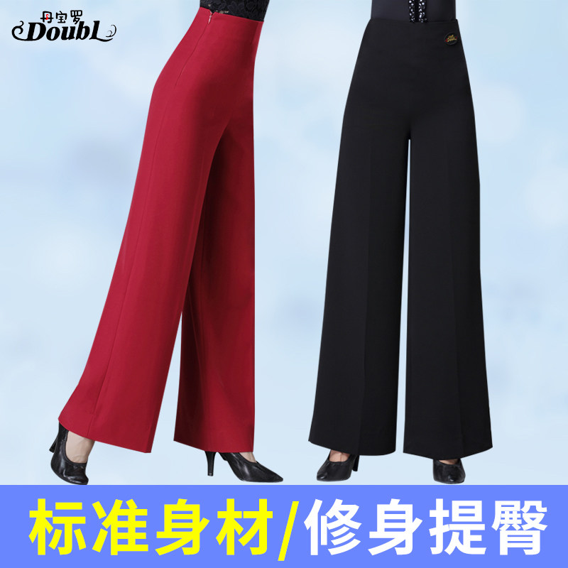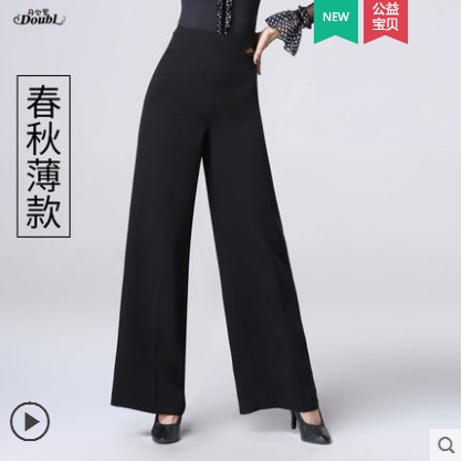 Dampolo High-waist Latin Dance Leg Pants Women Adult Black Dancing Pants