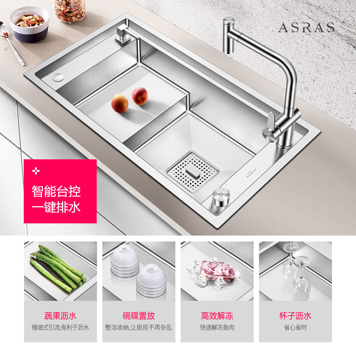 Assas stepped sink wash basin single sink 304 stainless steel manual sink Kitchen high and low sink package