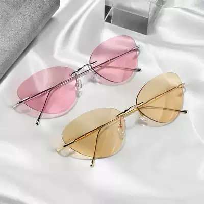 Ultra light myopia sunglasses women rimless red sunglasses anti UV degree glasses ladies retro sunglasses tide tide