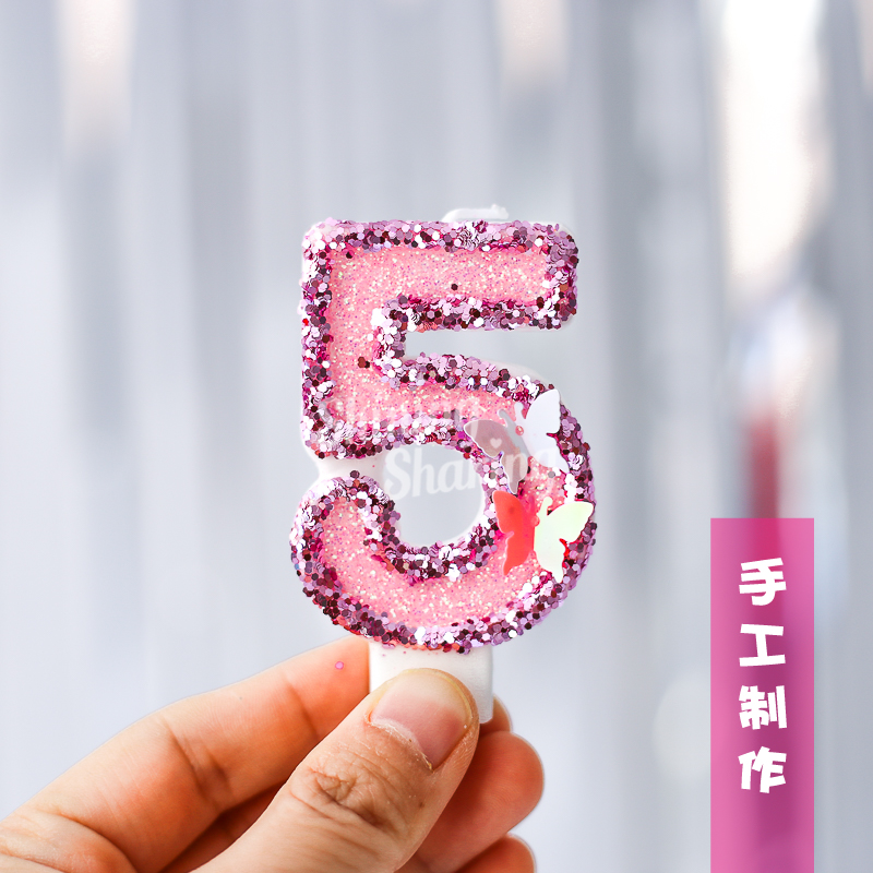 Pink Butterfly Creative Digital Handmade Candle Children 100 days old Adults Birthday Party Arranged Cake Decorations
