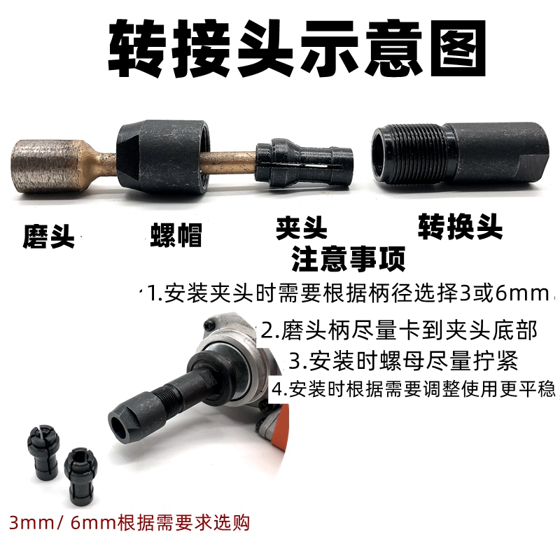 Complete set of 6mm conversion head Complete set of 3mm conversion head Complete set of chucks (including 3mm and 6mm)