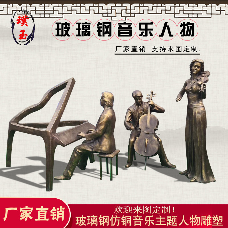 Music theme glass fiber painted imitation copper piano music combination figure sculpture pedestrian street outdoor floor ornaments