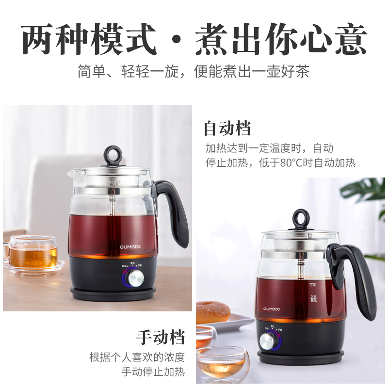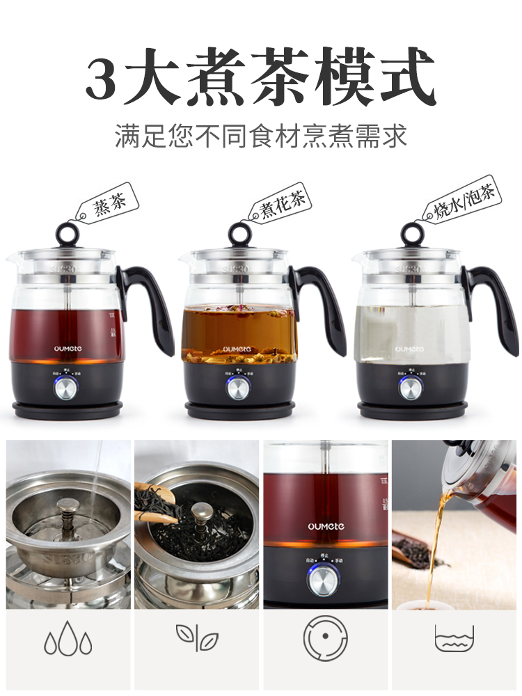 European and American special black tea cooking tea machine home glass steam spray-type teapot Pu'er large capacity 1l electric heat health preserving pot