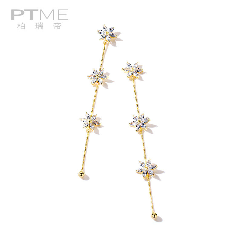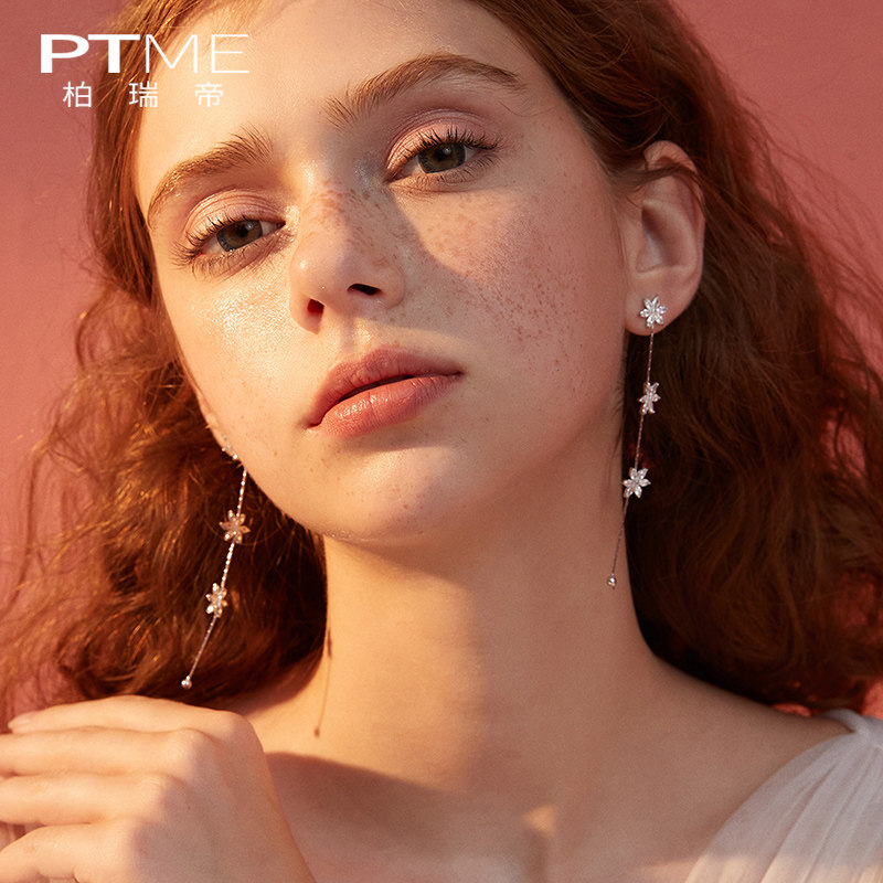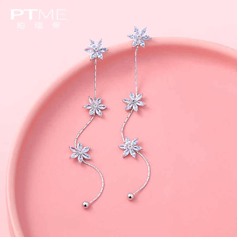 Autumn and winter thin round face earrings sterling silver earrings long version of women's temperament super fairy snowflake earrings 2021 new tide