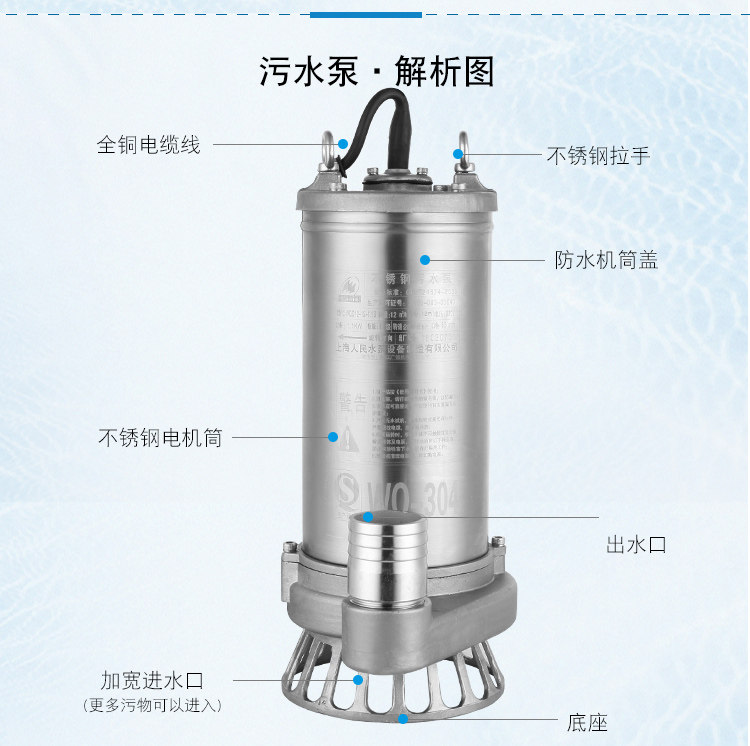 Shanghai people's 304 all stainless steel submersible pump corrosion-resistant chemical pump high lift pump sewage pump 220v