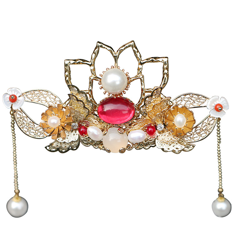 Looking for a hairpin original Hanfu flower headgear ancient style hair accessories hairpin tassel flower rose rose red lotus small hair crown