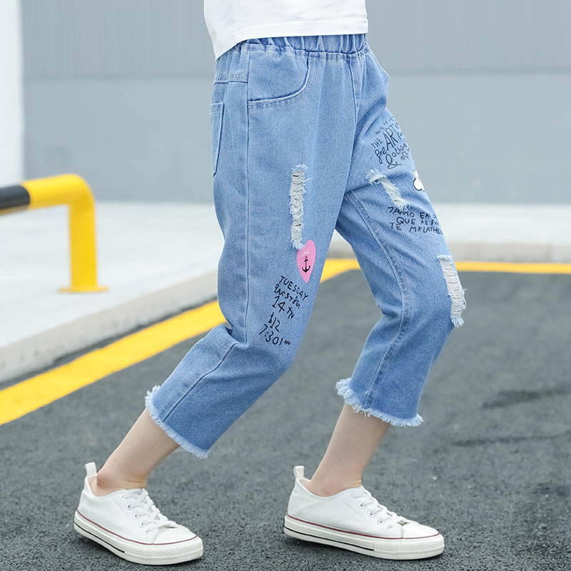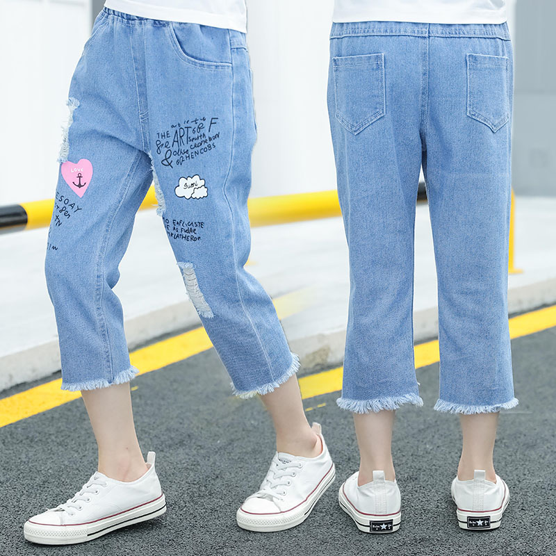 Girls' pants summer thin 2022 new Korean edition of the big children's puppy jeans summer dress and casual children seven pants tide