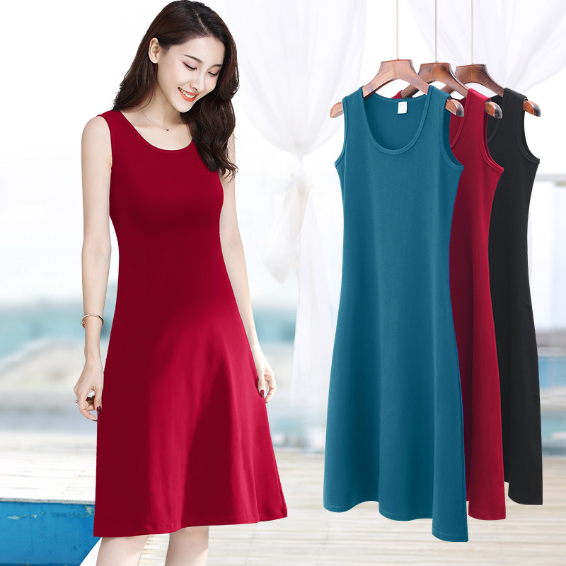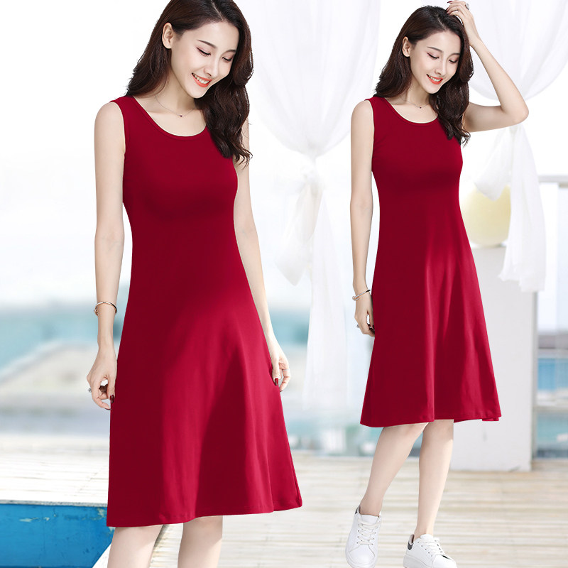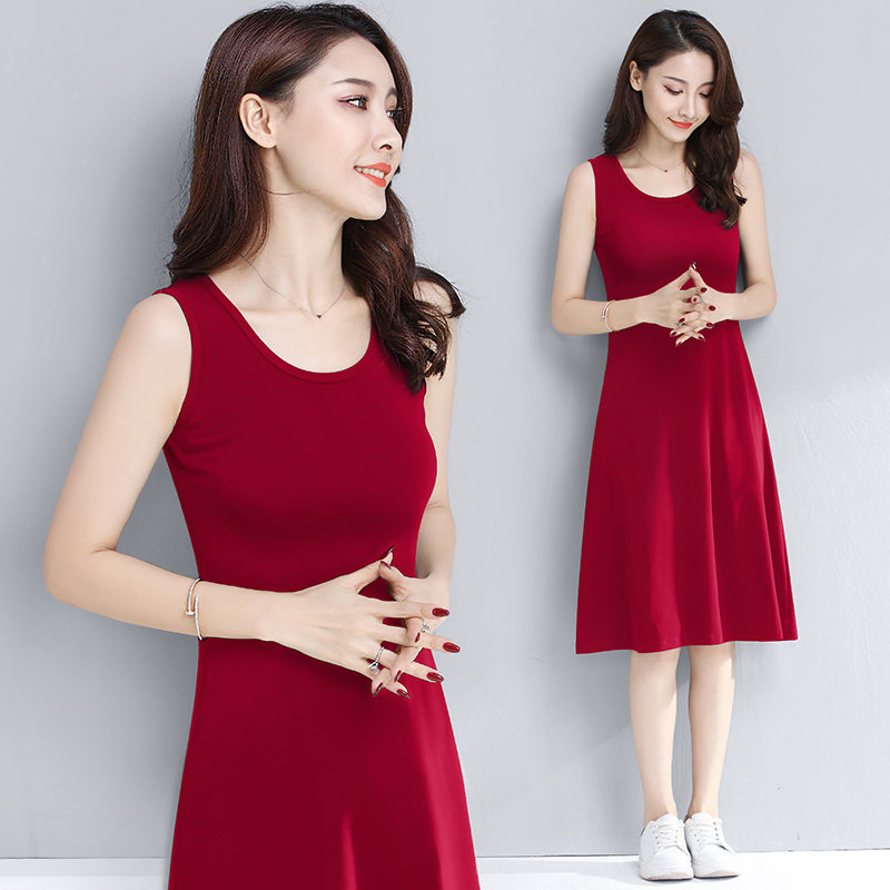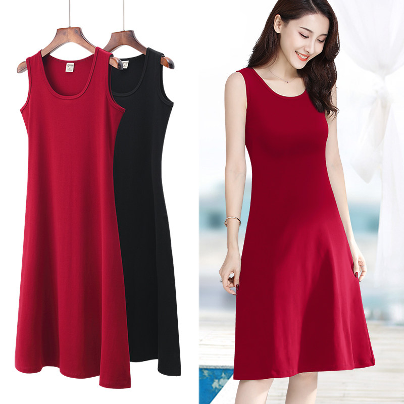 Sleeveless dress summer temperament a word wine red large size camisole long dress children 2021 new summer clothes
