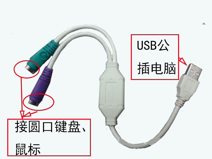 USB revolution PS2 mother switching line round mouth turn notebook USB square port sliding mouse keyboard converter head with chip