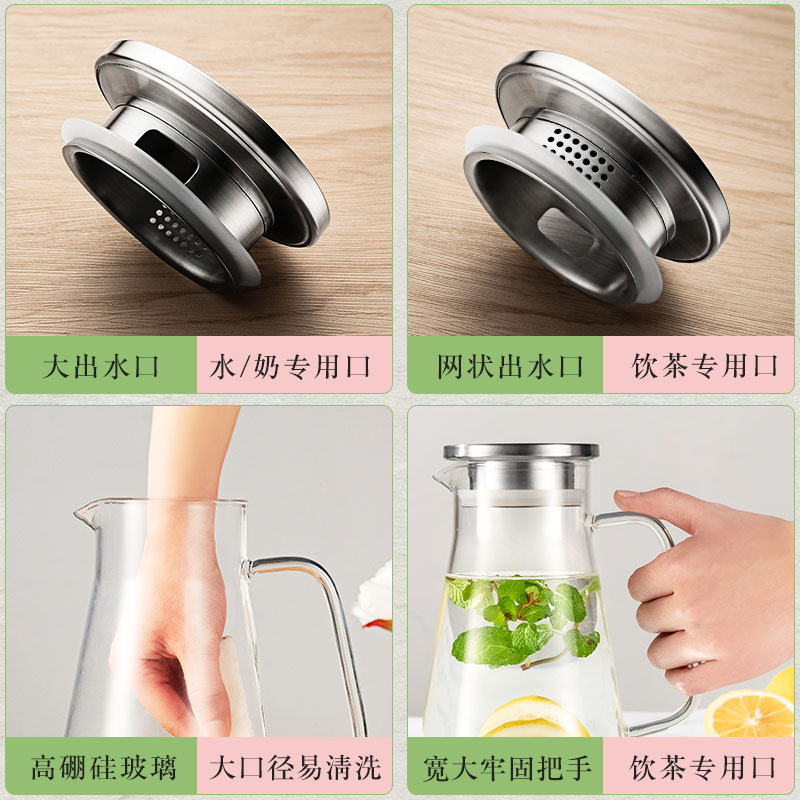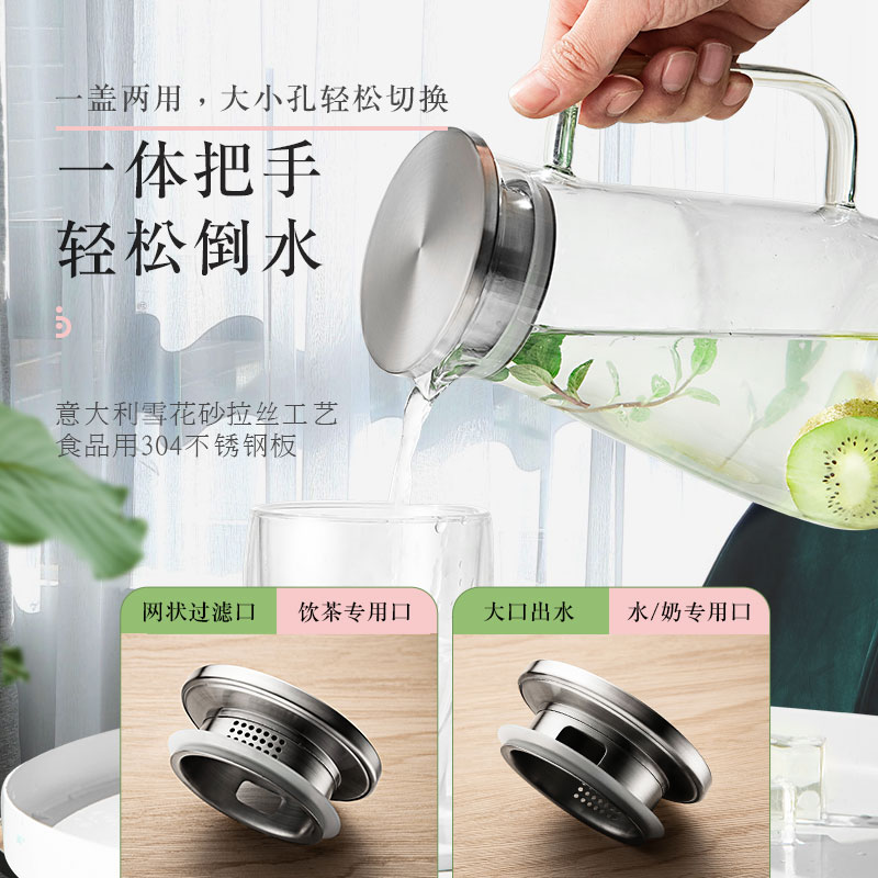 Rich Light Cold Kettle Home High Temperature Resistant Heat Resistant Glass Cold Kettle White Open Kettle Teapot Juice Pot Large Capacity