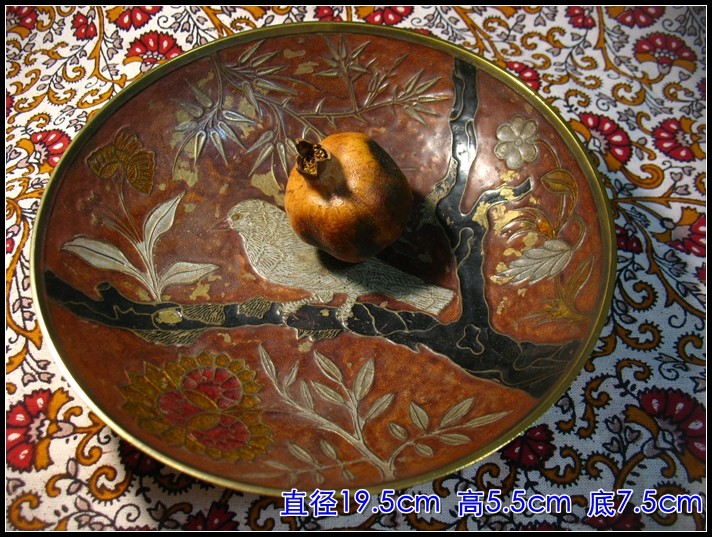 Small bird, India naughty hand painted pinch enamel thick retro brass fruit basin hem piece decorated with high foot tray