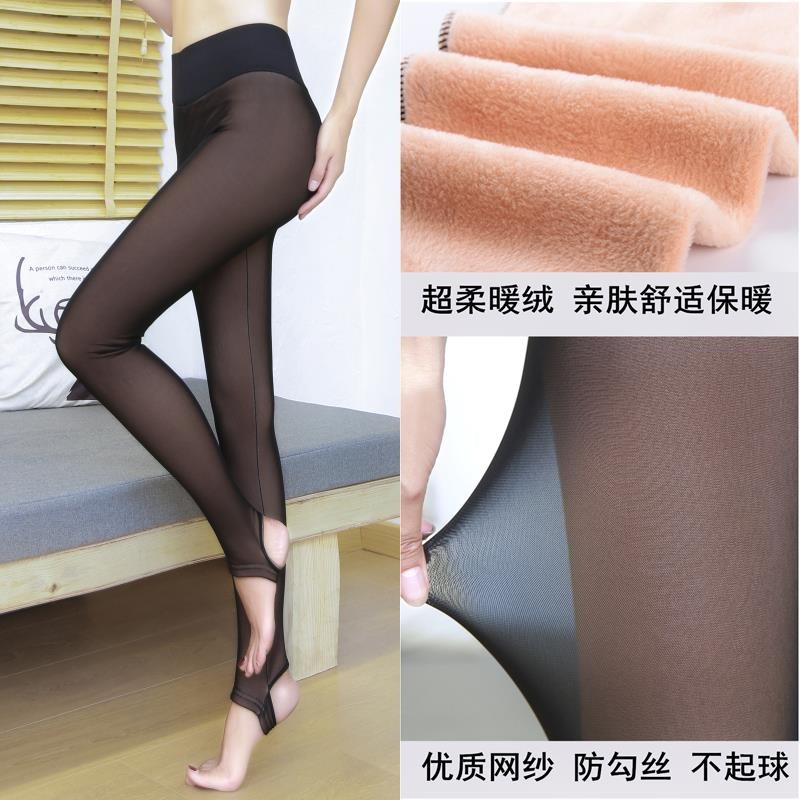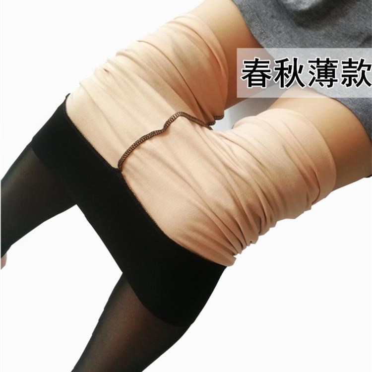 Fake meat inside pants women's spring and autumn thin section high waist wear large size mesh yarn autumn and winter velvet warm meat color step on the foot