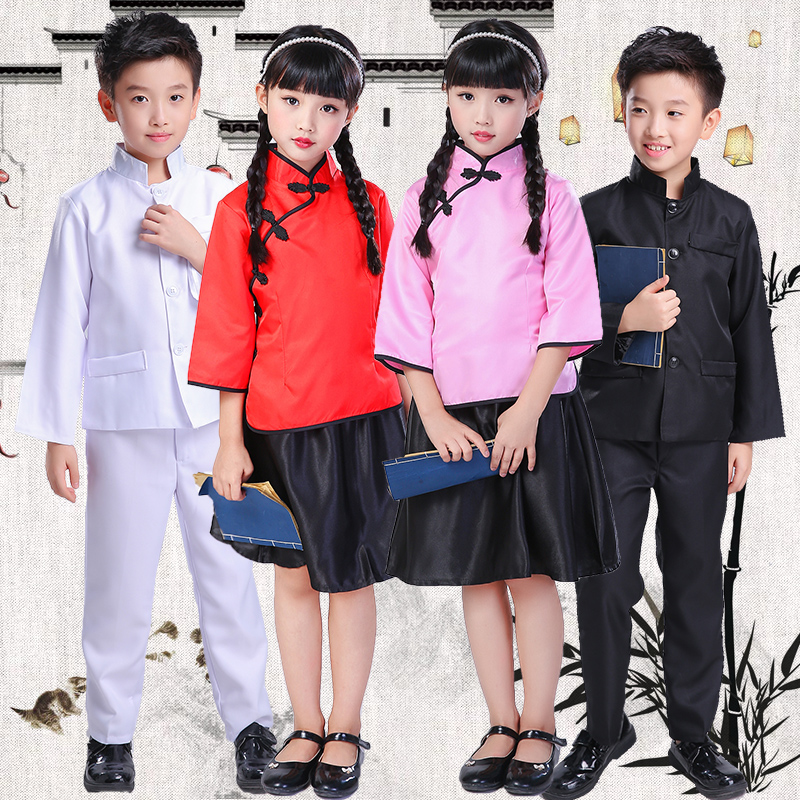 Children's Republic of China Style Clothing Students May 4th Youth Zhongshan Men's and Women's Cotton Hanfu Chorus Recitation Performance
