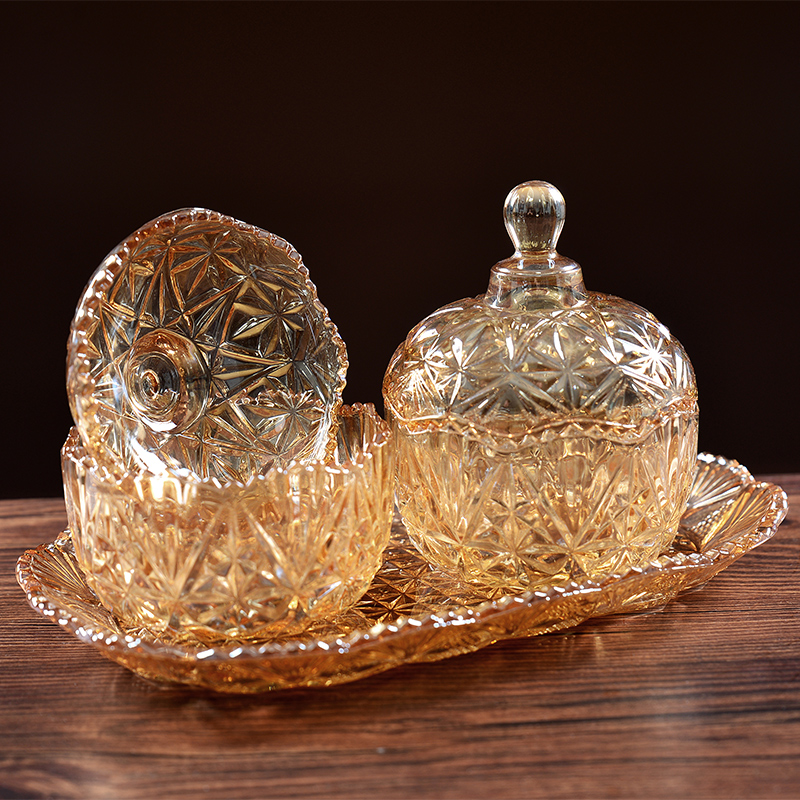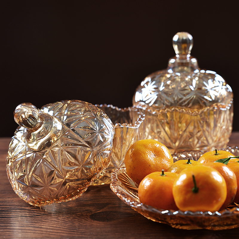 European style candy can set crystal glass sugar box transparent belt lid creative storage jar cans modern home