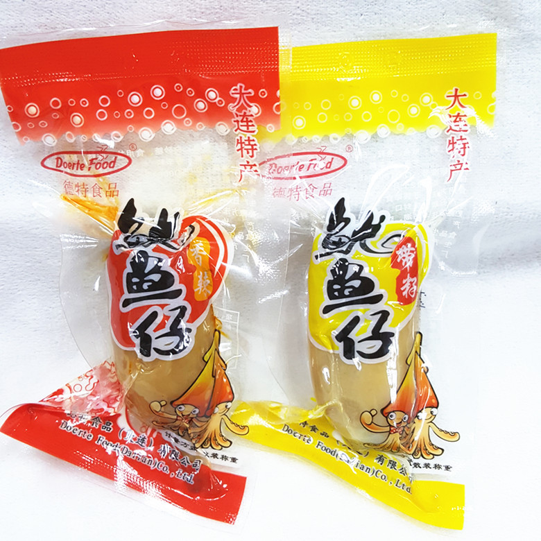 1 catties of charcoal grilled baby squid (blue bag) 1 catties of raw squid (yellow bag) charcoal roasted