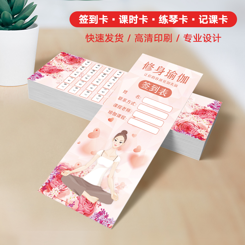 Training institution class hour card check-in card registration form yoga record card custom beauty points reward card custom points card paper making children's custom free design simple creative printing