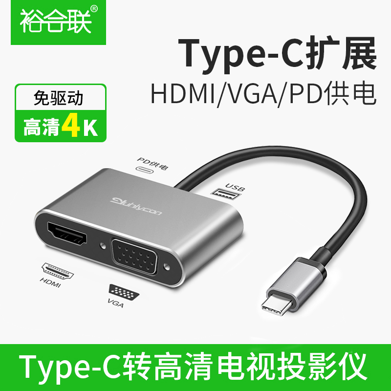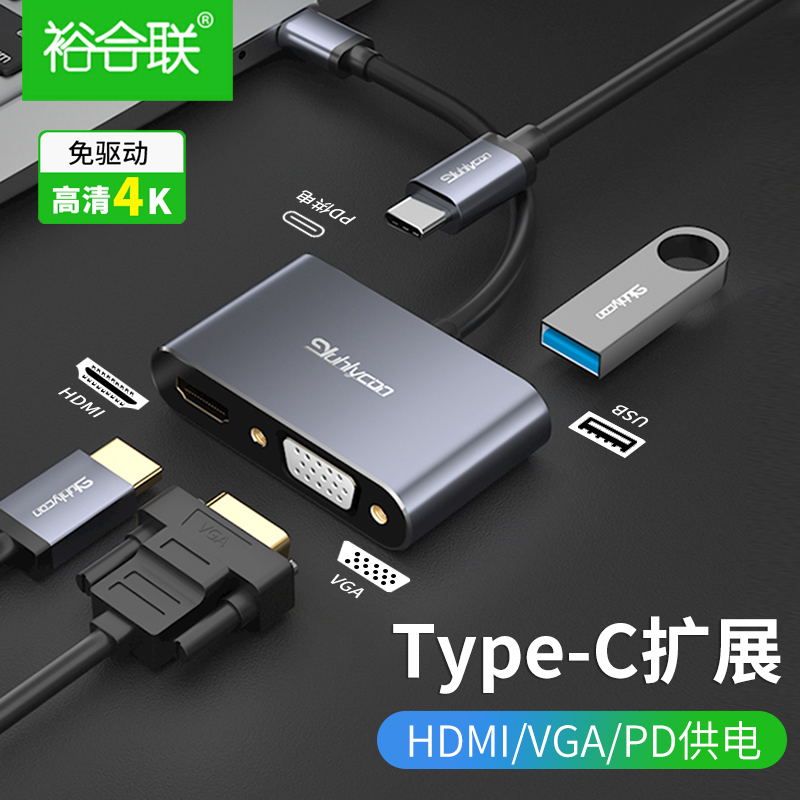 Yuquofen Type-c to HDMI Converter VGA lightning 3 expanded dock interface is suitable for Apple laptop connector display TV PC projector usb Huawei Macbo