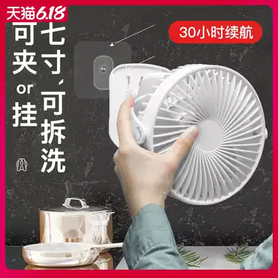 USB small fan rechargeable student dormitory clip-on kitchen can be wall-mounted electric fan small desktop office hanging wall ultra-quiet table clip fan dressing room mini bed car removable and washable