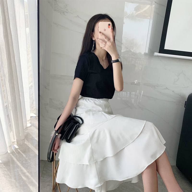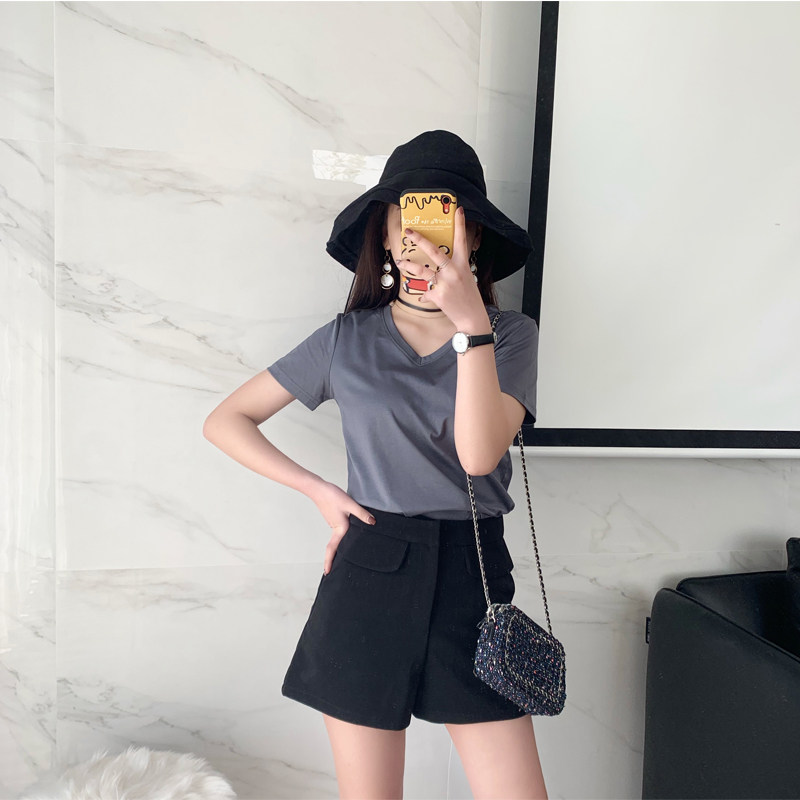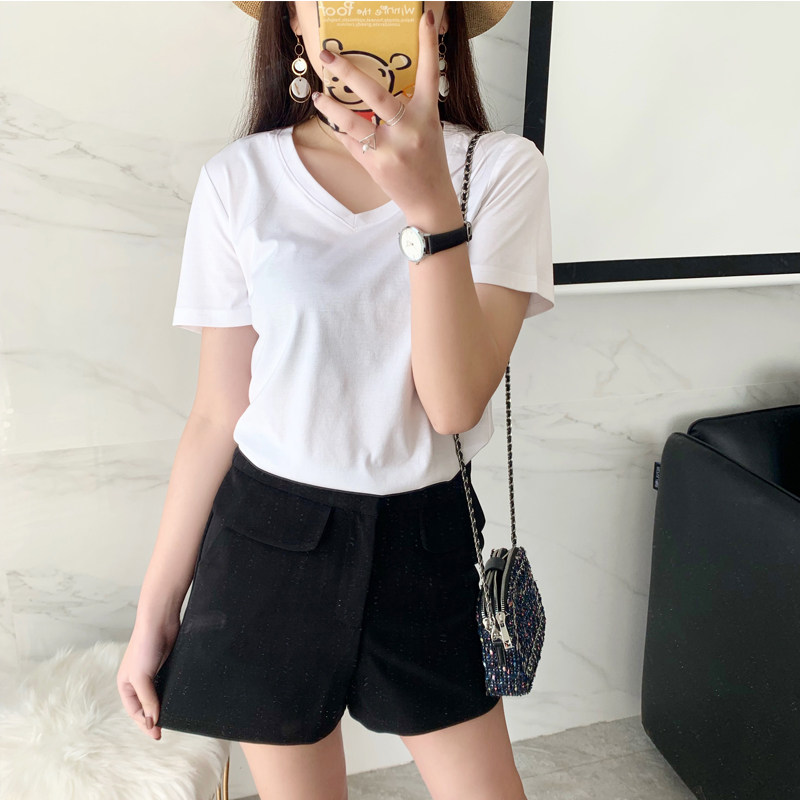 Budaifen top women's short-sleeved women's 2019 new base shirt summer women's half-sleeve cotton V-neck white T-shirt women's