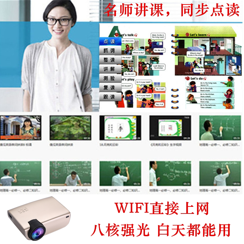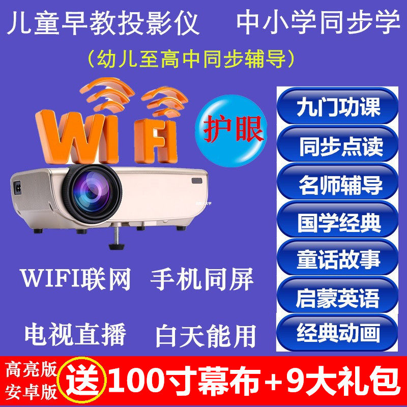Smart Wifi Children Projector Big Screen Elementary School Students Sync Learning Machine Junior High School English Story Light Early Teaching AI