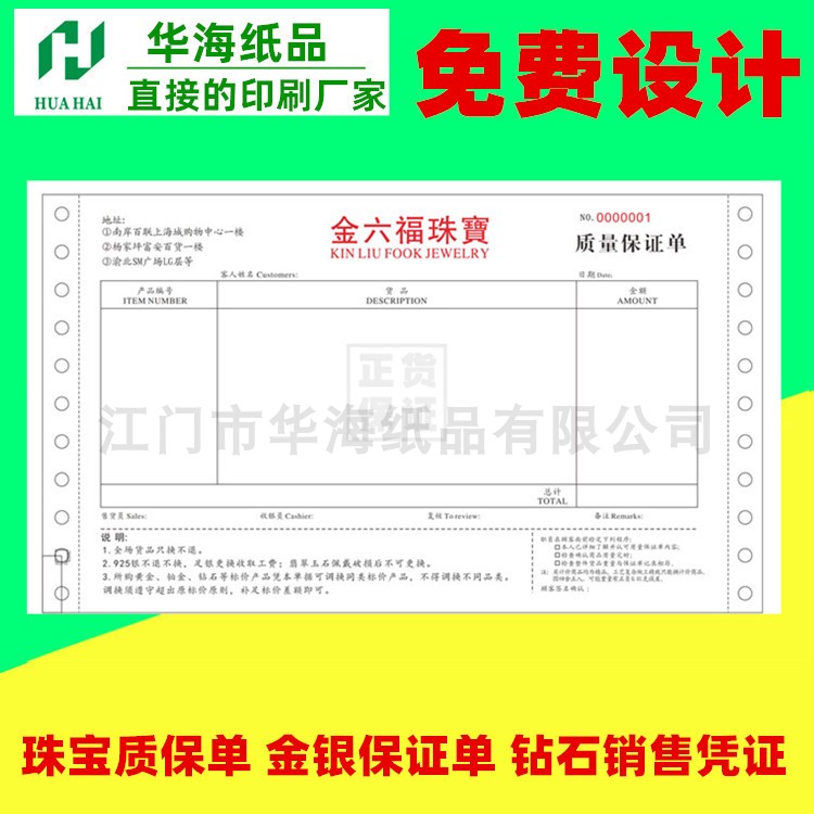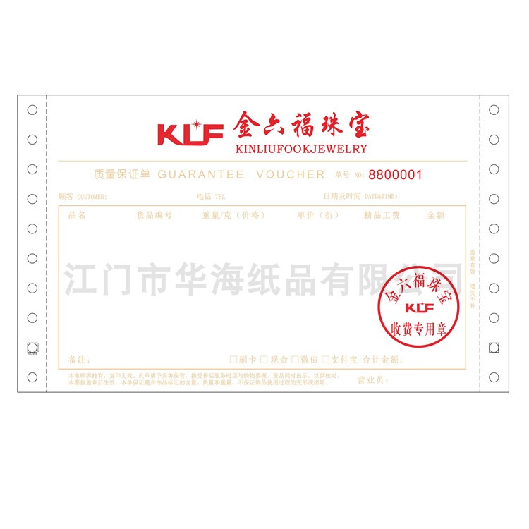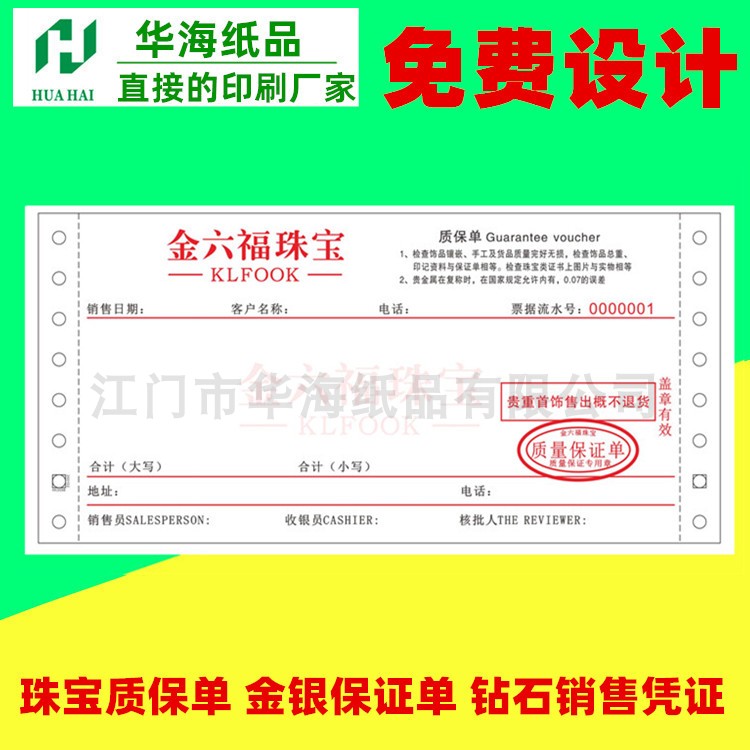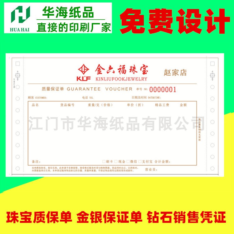 Print Thickened 80G with anti-counterfeiting watermark Jewelry Elemental Policy Delivery Slip of Order Custom Two-League Assurance Single Sales Order