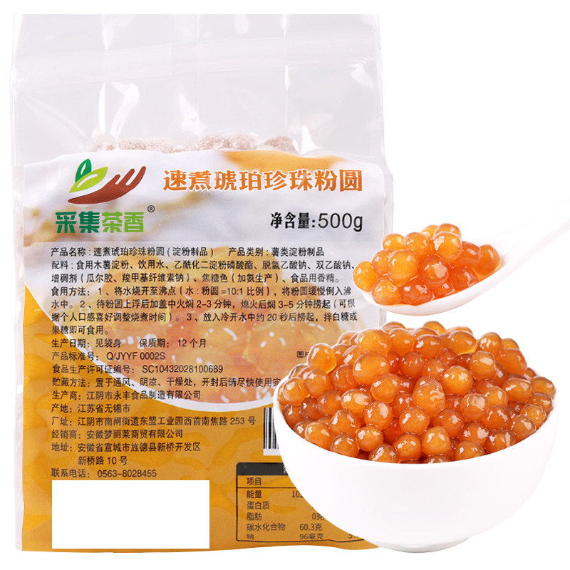500g Speed Cooking Amber Pearl Powder Round Dessert Ingredients Quick Cooking Black Pearl Bean Pearl Milk Tea Shop Raw Material Special