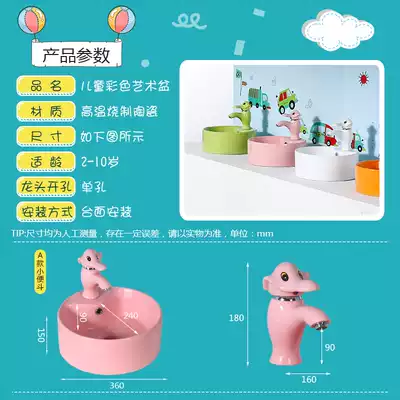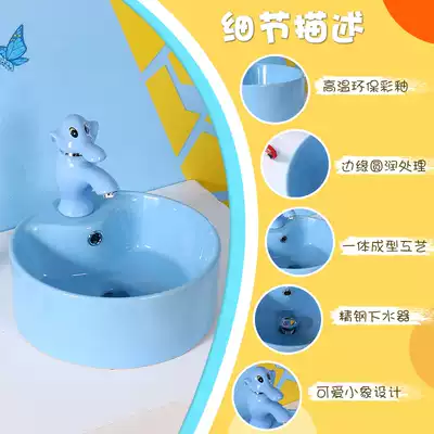 Kindergarten children's color washbasin Household ceramic table basin Small size round cartoon faucet washbasin