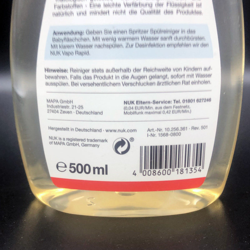 German NUK milk bottle cleaning liquid pacifier fruit and vegetable cleaning agent baby toy tableware wash and finish 500ml