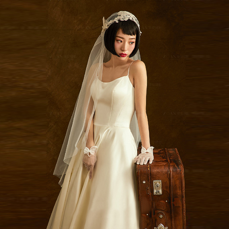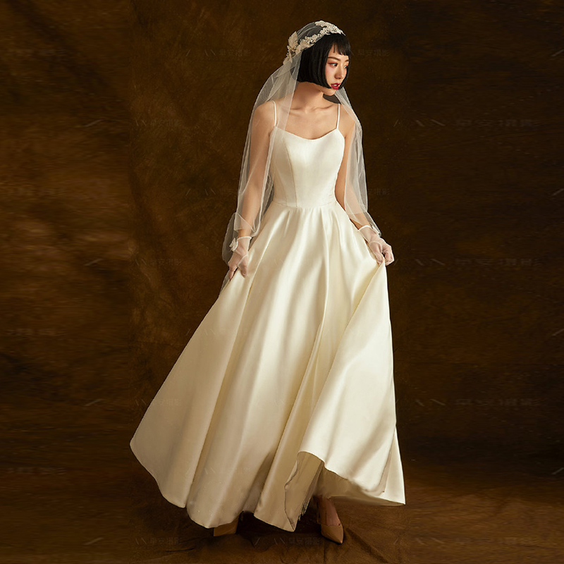 Photo studio theme clothing French retro style indoor sexy suspenders advanced satin wedding photo personal photo dress