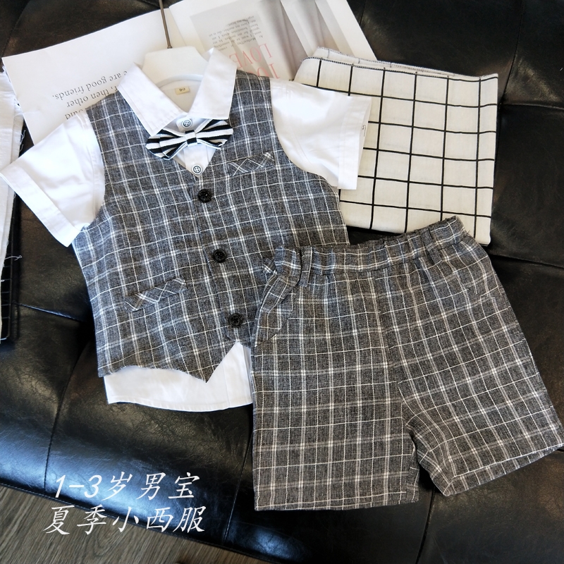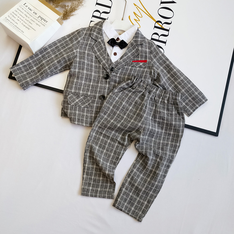 Week-year-old boy clothes gown Autumn clothes Men's baby Western suit suit Three sets of men's baby suits boy