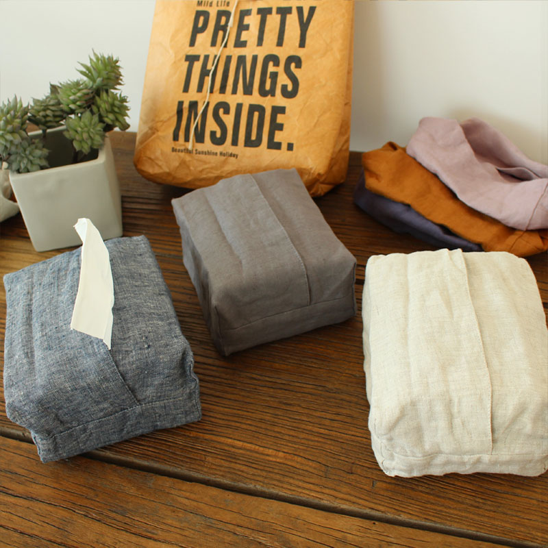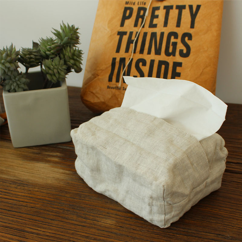Nordic style pure linen draw paper bag simple fabric draw paper box Car paper towel box Living room dining table paper towel bag