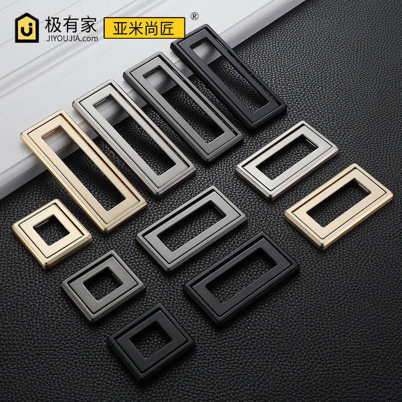 No punching modern minimalist drawer handle hidden invisible handle gold black free slotted hidden buckle pull ring