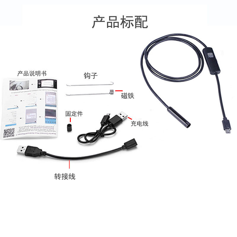 Android USB5 5mm lens 2m line high-definition waterproof LED light industrial pipe car detection endoscopic mirror