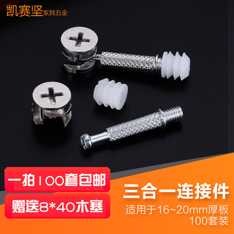 Three - in - one connector Wardrobe bed fasteners screw thickness eccentric wheel nut accessories 100 sets