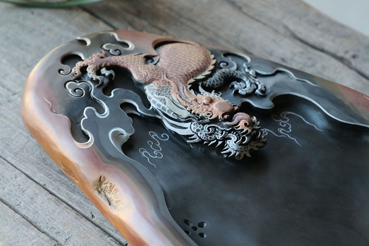 Natural large number Stone Ink Stone Tea Tray Handcarved Stone Tea Sea Tea Terrace Utilituristeo Tea drainage tea table