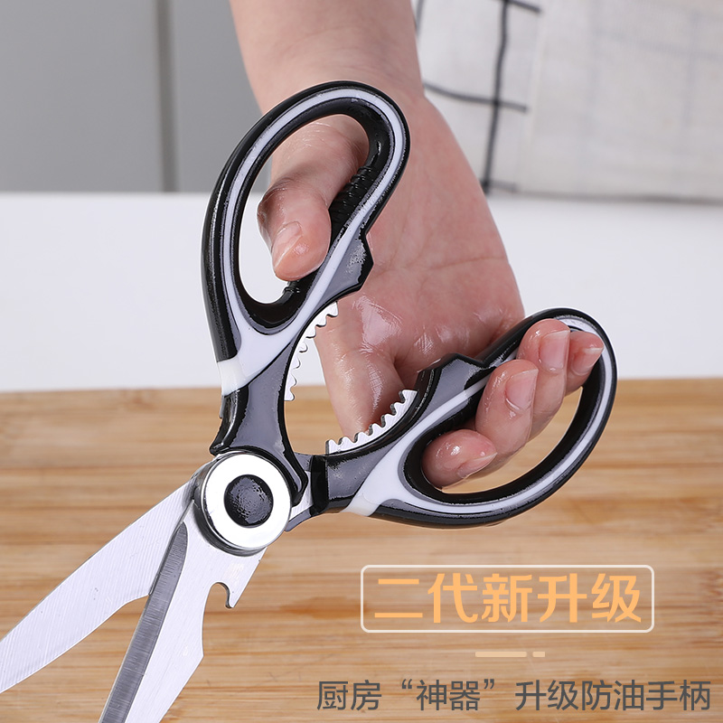 Multifunctional kitchen scissors Home fish killing special scissors chicken bone grilled meat artifact extra large stainless steel strong scissors