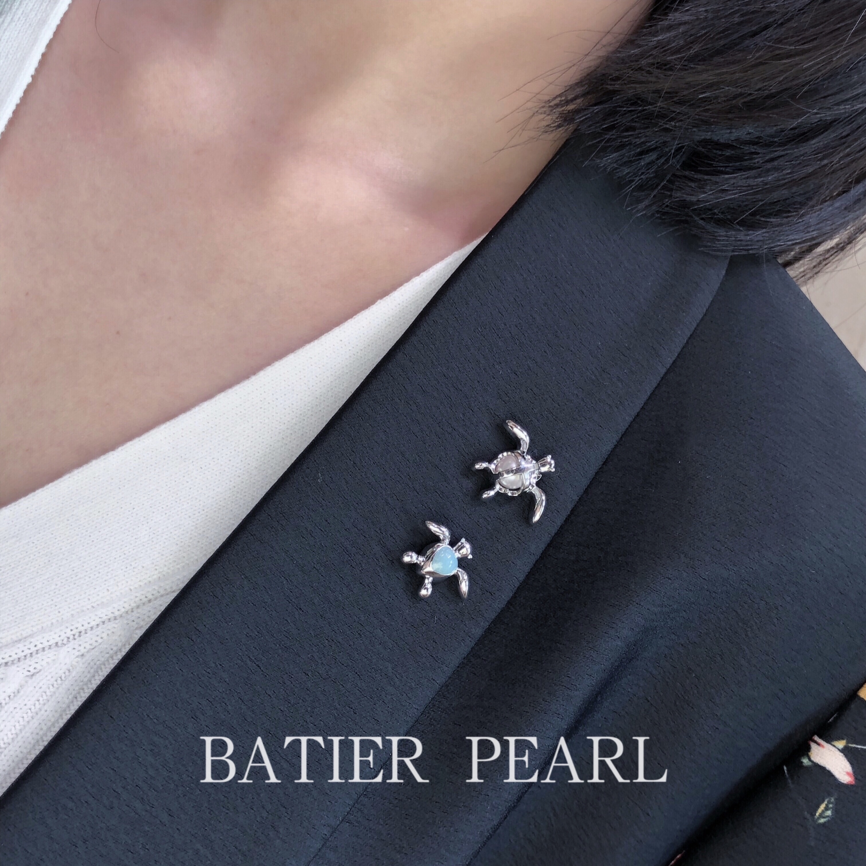 Bajia Jewelry Dumb Cute Turtle M same Japanese akoya sea bead needle type anti-light brooch combination men's
