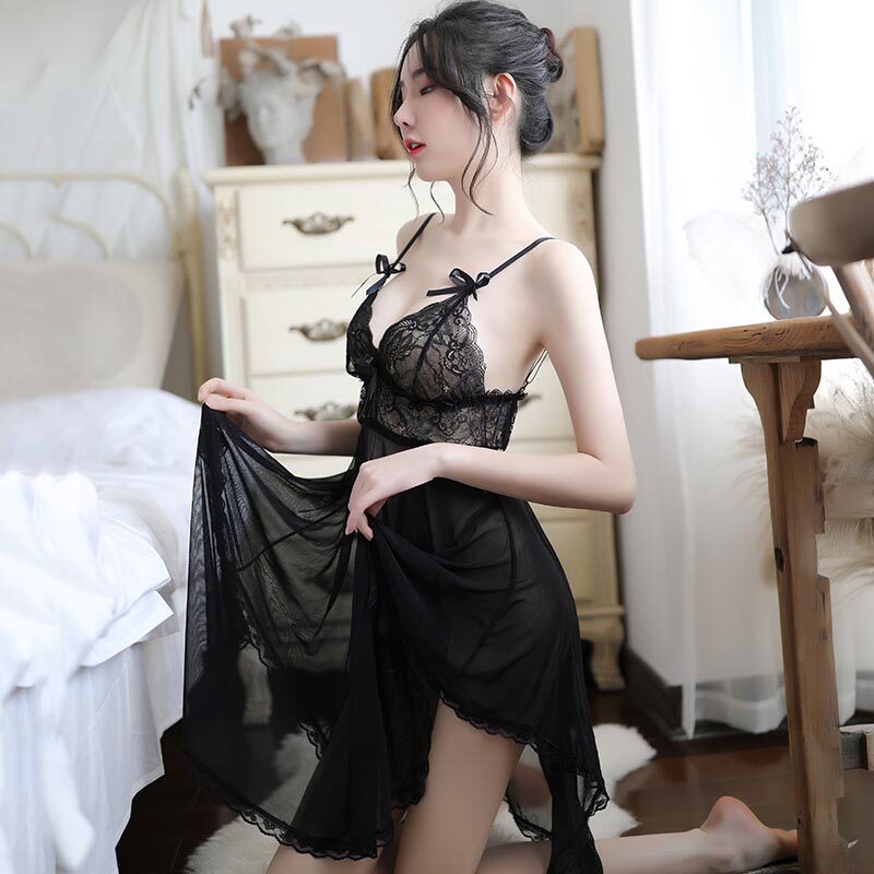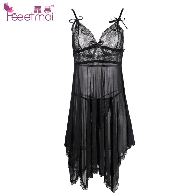 Feimu lace deep V sexy suspender night dress perspective sex underwear Ultra-thin transparent yarn show pajamas temptation tease